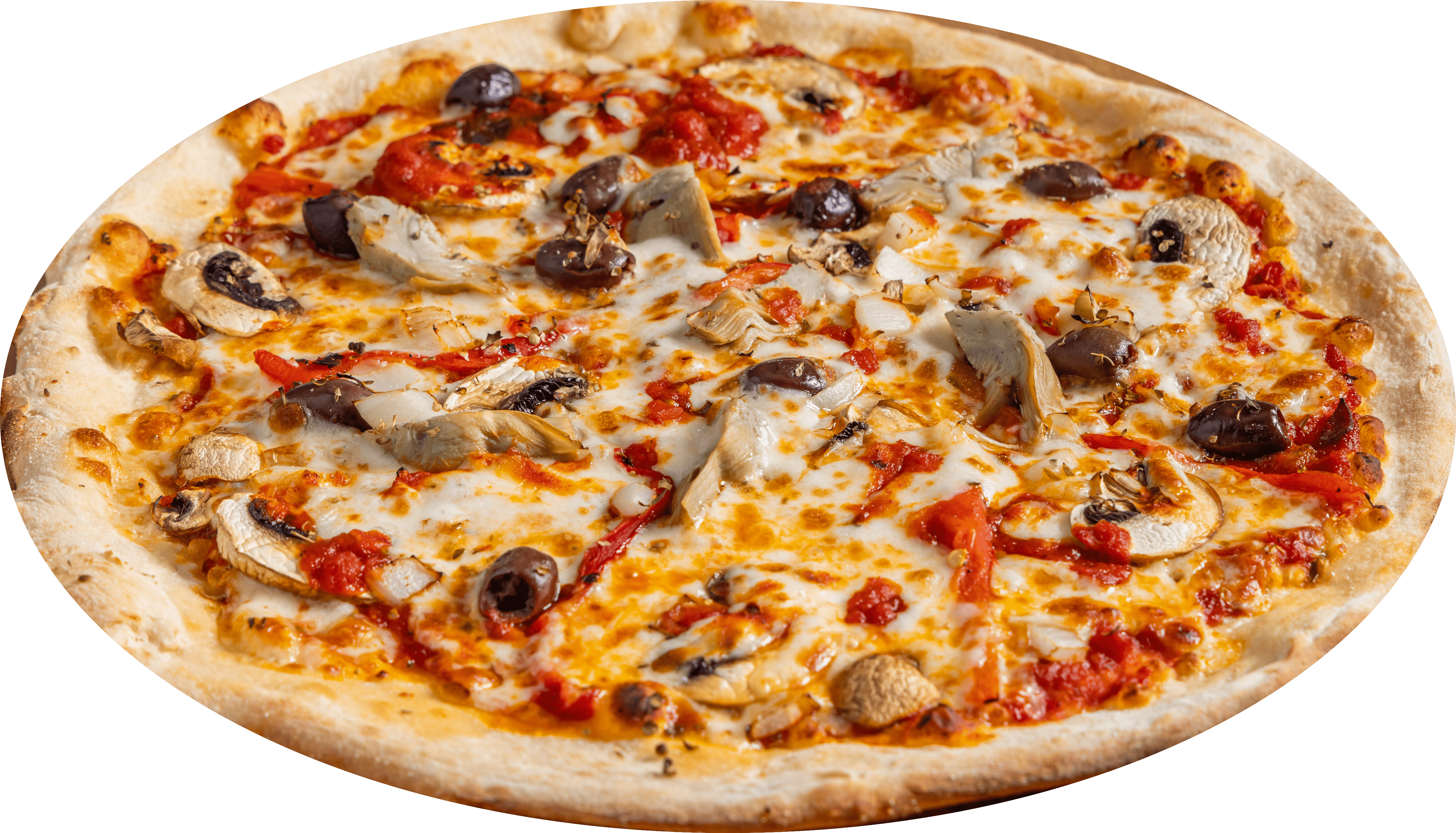 Sundried Tomatoes, Artichokes, Mushrooms, Roasted Capsicum, Olives, Oregano, Garlic with Napolitana Sauce and Mozzarella