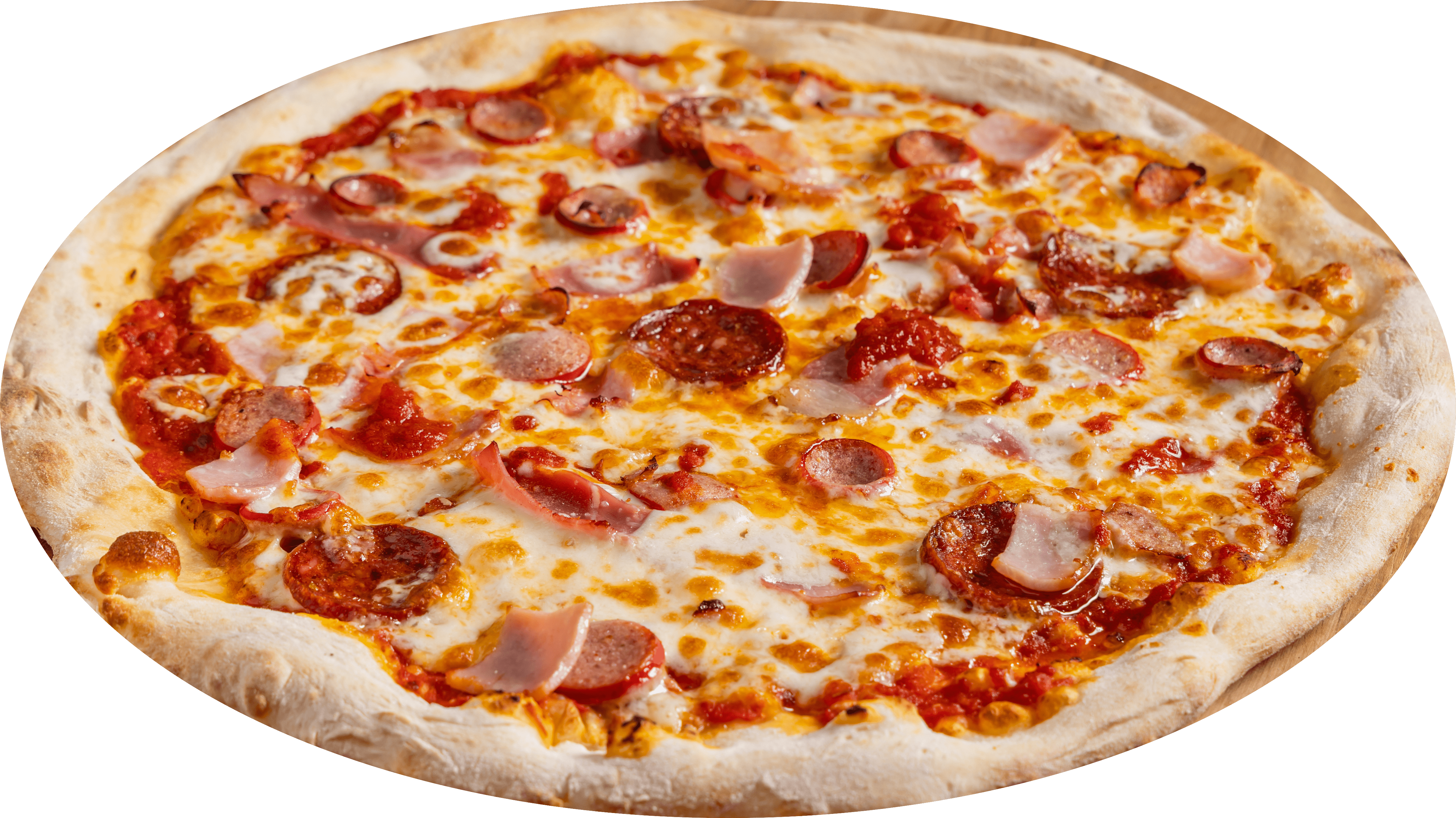 Ham, Cabanossi, Pepperoni, Bacon with Napolitana Sauce and Mozzarella