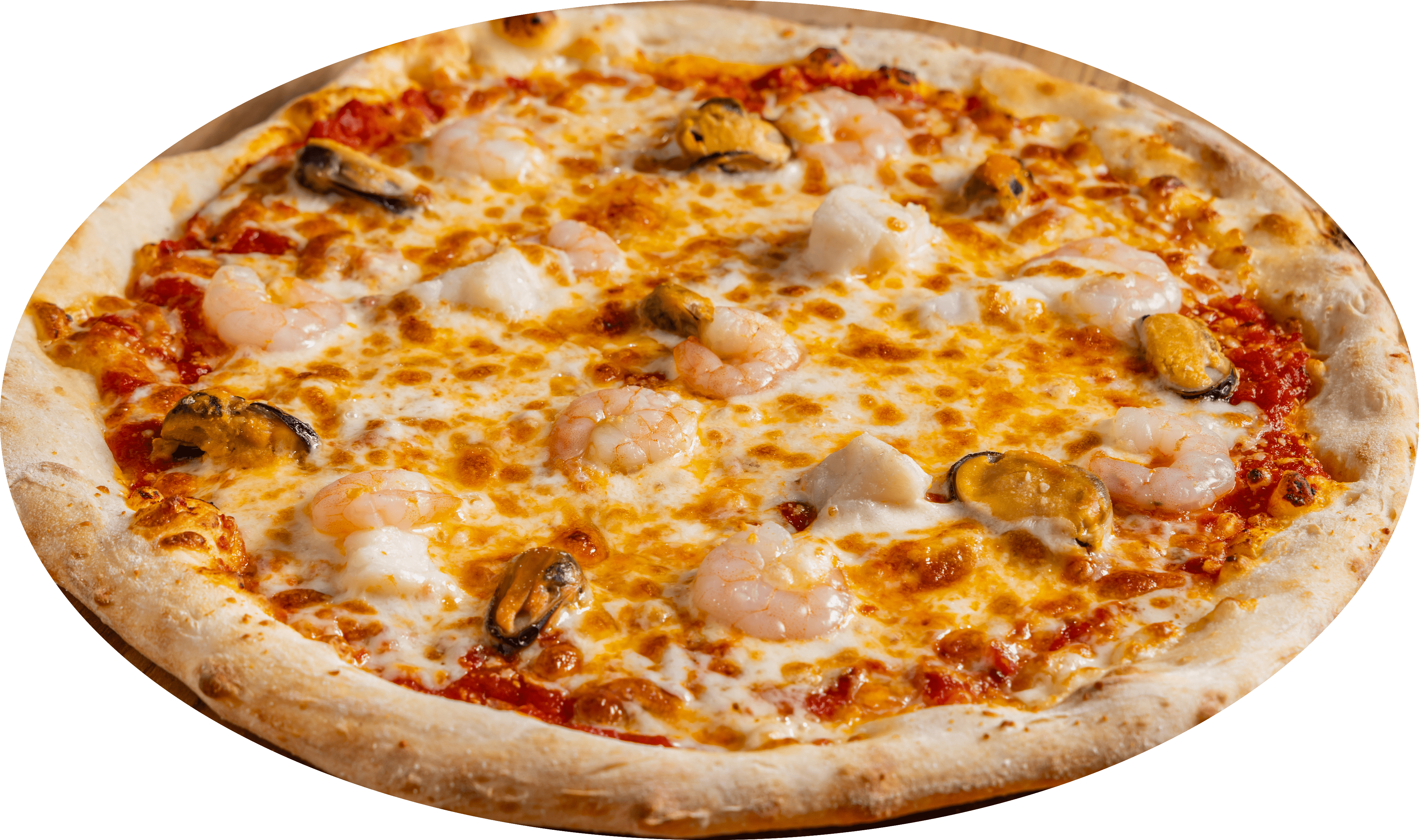 Fresh Prawns, Garlic, Chilli with Napolitana Sauce and Mozzarella